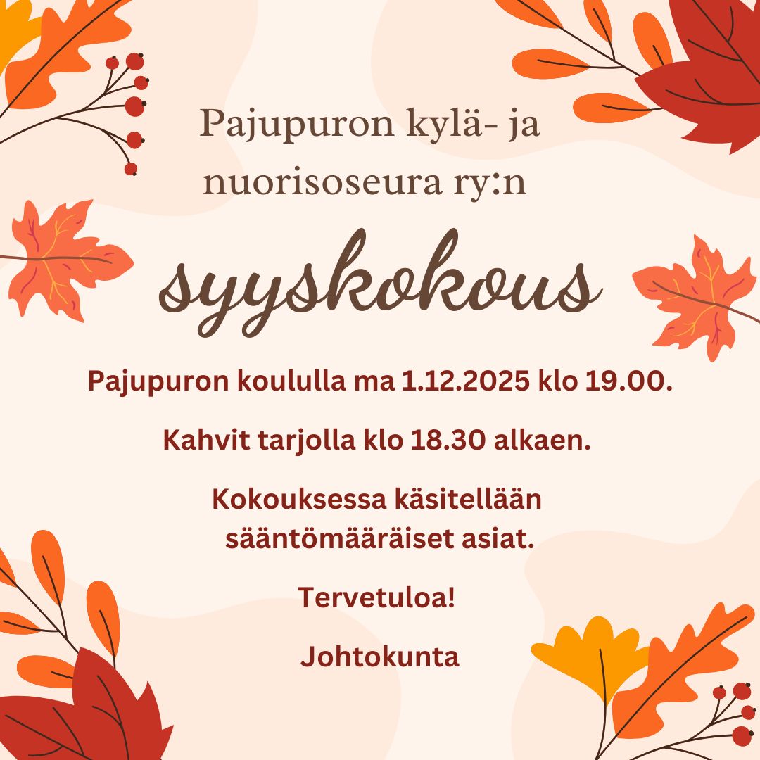 Kokoonnumme perinteisesti Pajupuron koulun kodalla jokaisen kuukauden toisena keskiviikkona, ja loppuvuoden 2025 päivämäärät ovat: